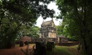 There is an unidentified statue found in Nalanda Gedige by archaeology department of Sri Lanka and according to the appearance it has no similarity with a human being but it shows more similarities to an extra terrestrial being.”